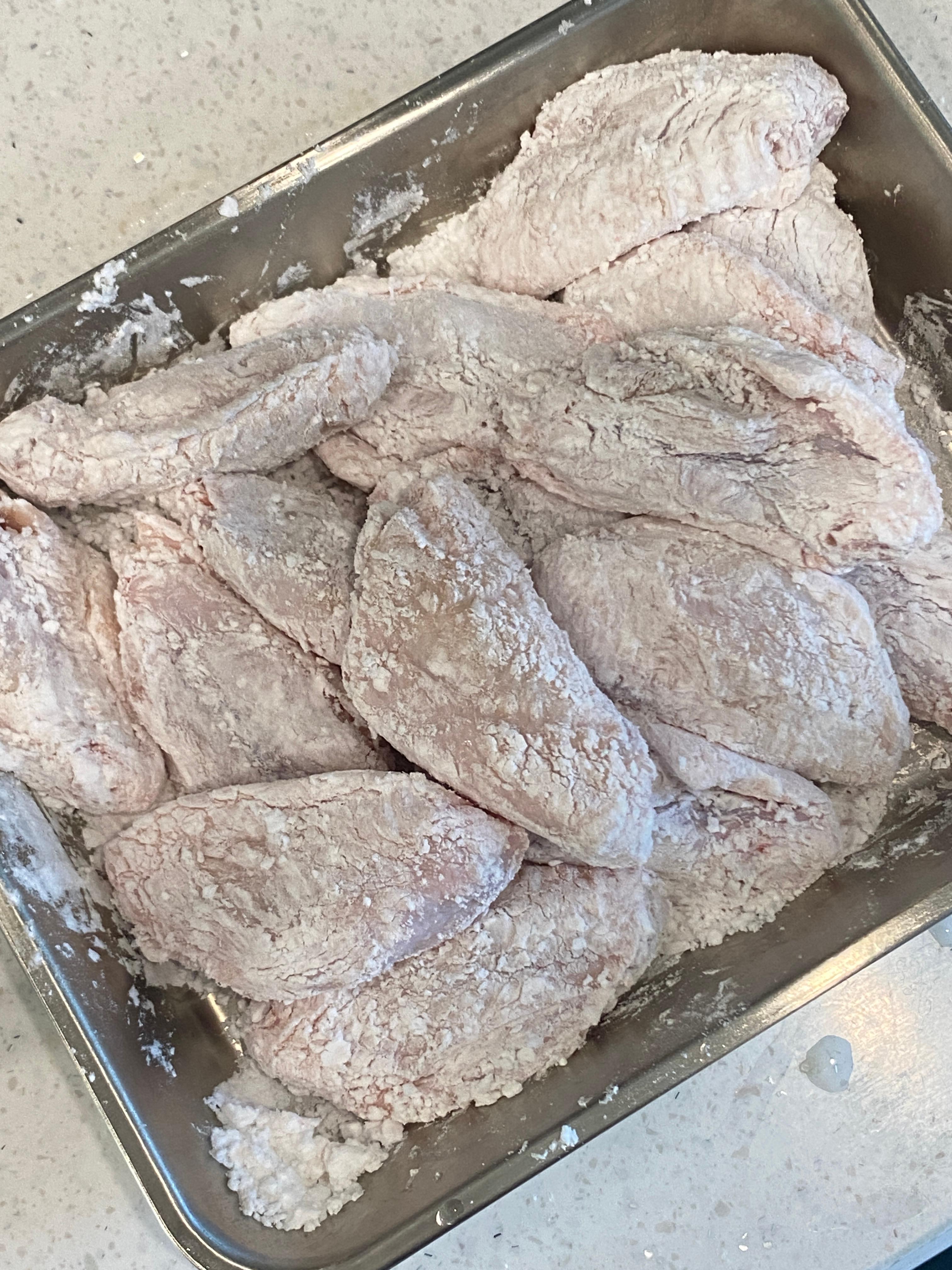 닭윙에 전분 2T 스푼을 고루 뿌려 꾹꾹 눌러 묻혀 주세요.